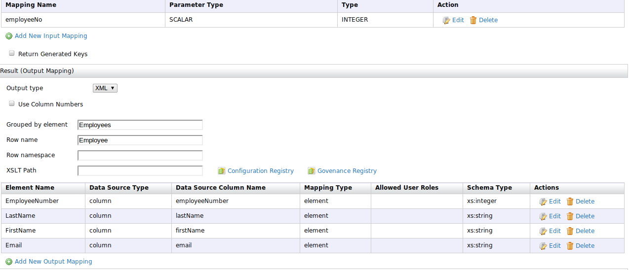 There are elements in the output result we need to map. There are four output Mappings we need to define and i following screenshot shows adding one of them.